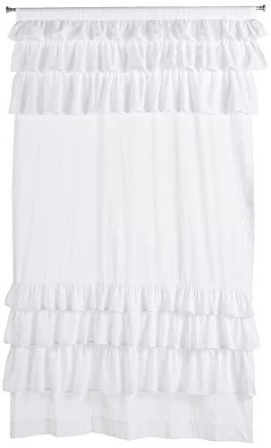 Madison Park White Living Room, Cottage Country-Rod Pocket Ruffle Bedroom, Anna Solid Voile Window Curtains, 50X63, 1-Panel Pack