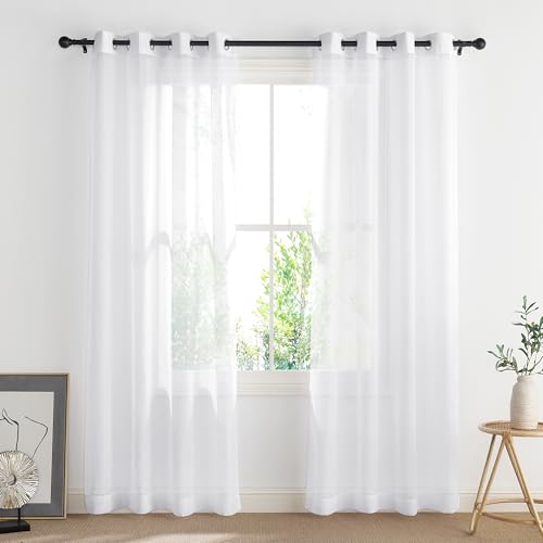 PONY DANCE White Voile Curtains 90 Drop Pair, Semi Transparent Sheer Curtains for Bedroom/Living Room/Patio Door Super Soft Privacy Protected Window Treatment Eyelet, Set of 2, 54 x 90 inches
