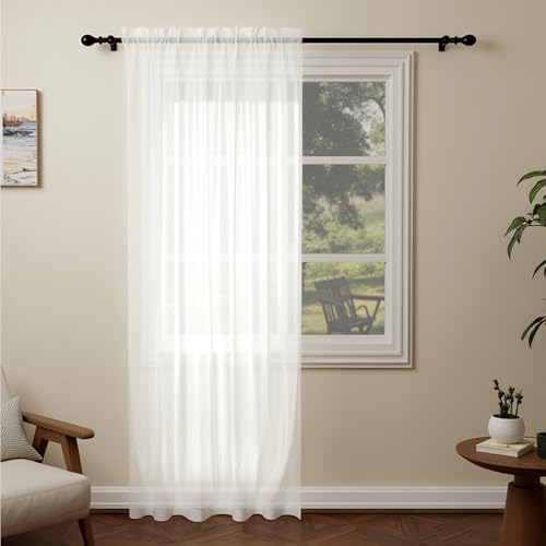 PONY DANCE White Voile Curtains for Window - Light Filtering Curtains for Bedroom, Privacy Screen, Double Slit Top Woven Voile, 1 Panel, 228.6 x 213.4 cm