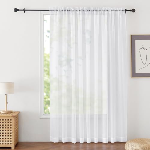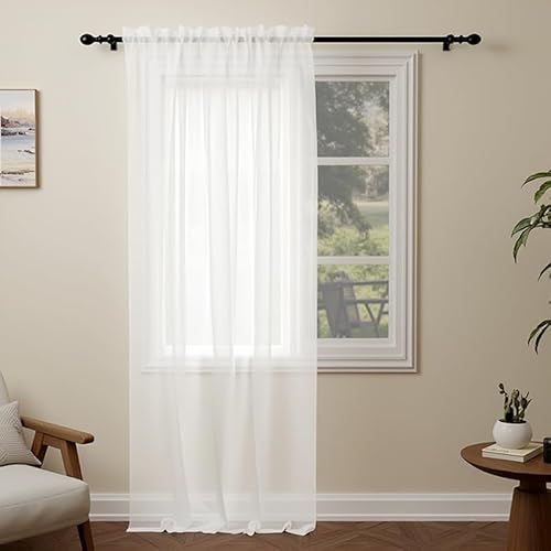 MRTREES Voile White Curtains 90 Inch Drop 2 Panels Voile Curtain Panel Rod Pock