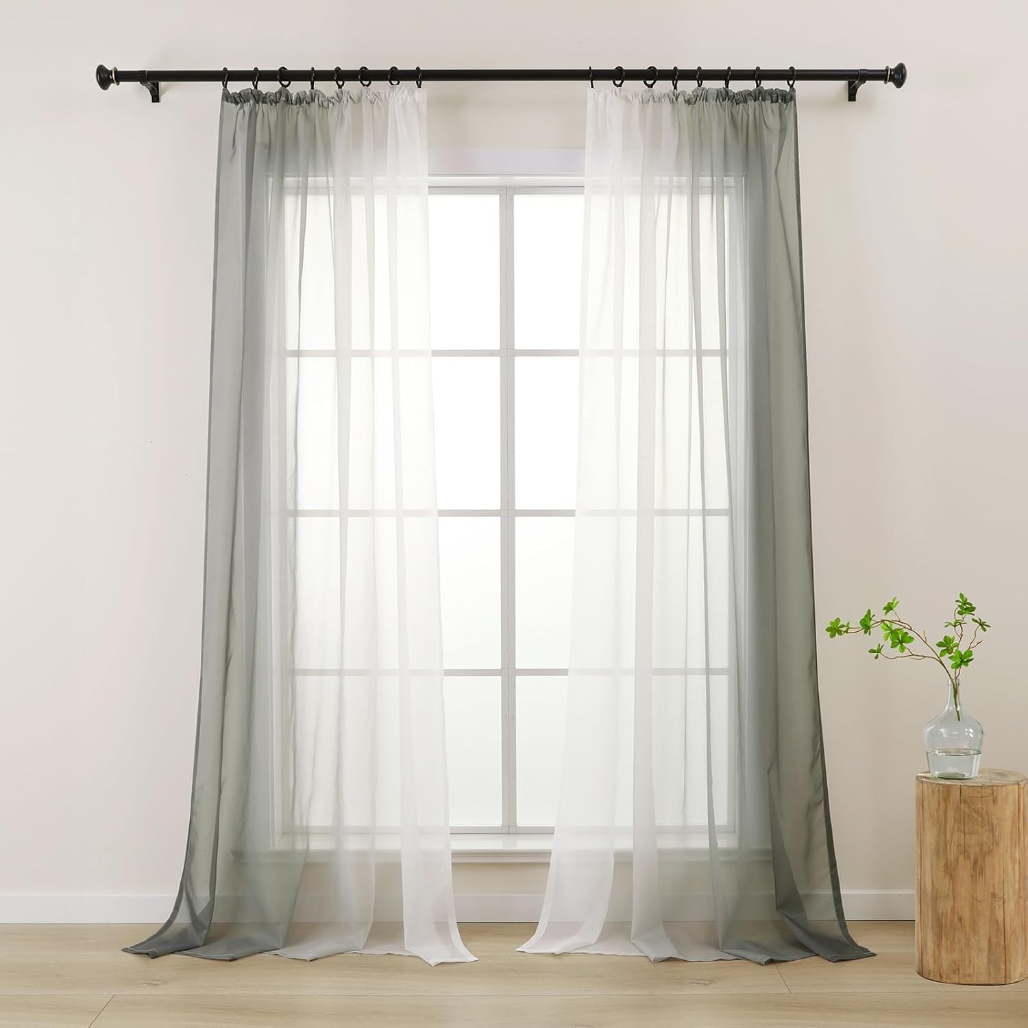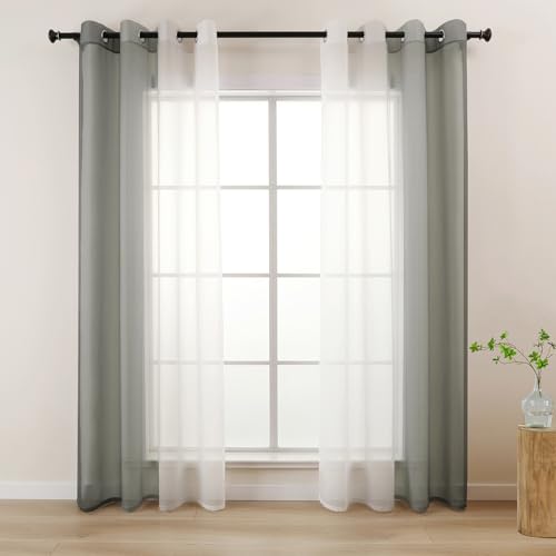 L.Z.E Grey White Voile Curtains for Living Room, Light Gray Ombre Sheer Curtain