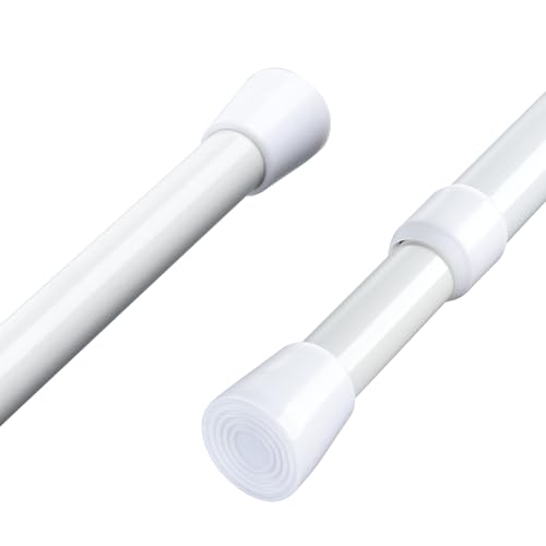 Aluminium Extendable Curtain Rod Tension Pole Easy Fitting For Net Curtains Shower Curtains or Voile, Length 55-90cm, Diameter 1.3cm White