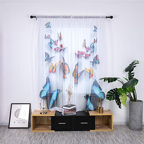 BOYOUTH Colorful Butterflies Pattern Digital Print White Sheer Voile Curtains for Small Window,Rod Pocket Window Drapes for Bedroom,Study,Living Room,Multicolor,2 Panels,53 x 78Inches