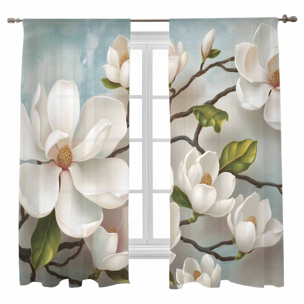 Sheer Curtains 72" L, Farmhouse White Floral Voile Drapes, Light Filtering, Rod Pocket, 52"W x 72"L, 2 Panels