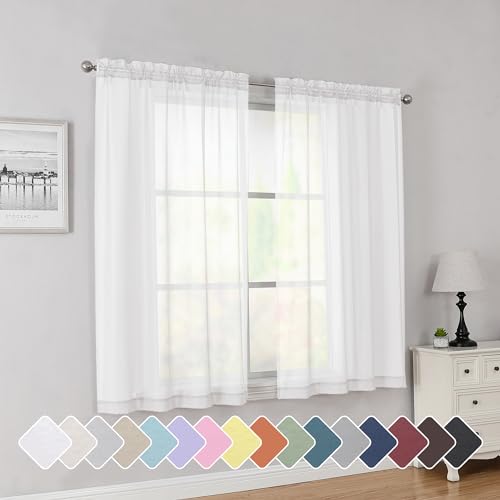 Chyhomenyc White Sheer Curtains 54 Inch Long 2 Panels Set, Short Voile Rod Pocket Drapes for Dinning Small Windows Bathroom Living Room Bedroom, Each 42Wx54L in, 2PCS, White