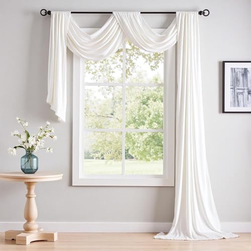 TOPICK White Net Curtain Scarf for Window, Wedding Arch Drapes, Semi Transparent Chiffon Curtain Valance, DIY Sheer Voile Backdrop for Ceremony Party Decor, W 51" x L 236" (1 Panel)