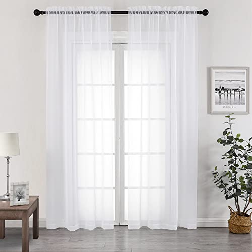 Melodieux White Semi Sheer Curtains 84 Inches Long for Living Room - Linen Look Bedroom Rod Pocket Voile Drapes, 52 by 84 Inch (2 Panels)