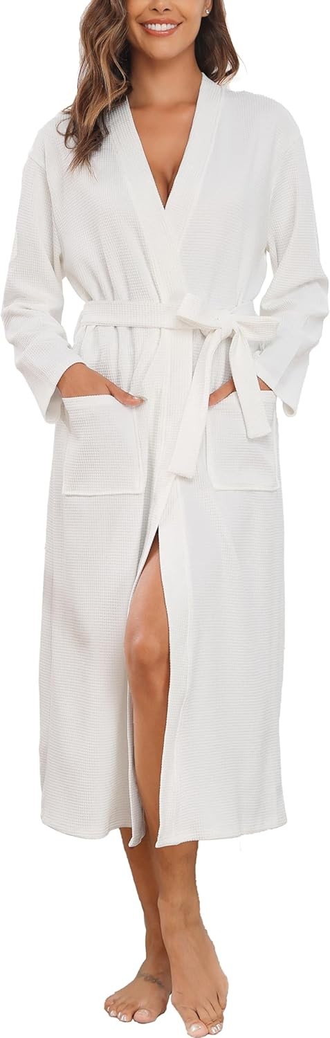 Sopesil Women Dressing Gown Waffle Full-Length Robe Lightweight M, White