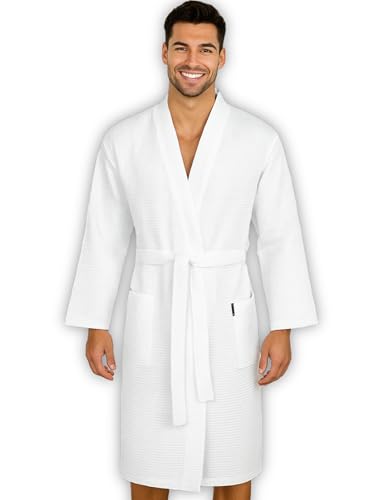 Morgenstern Dressing Gown Men Waffle 100% Cotton Lightweight Kimono Bathrobe White XL