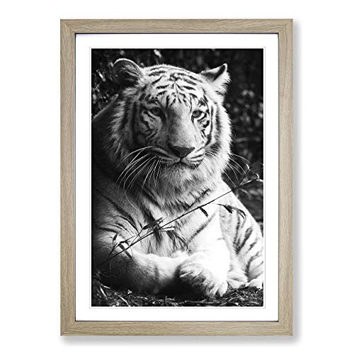 Big Box Art White Tiger Framed Wall Art Picture Print Ready to Hang, Oak A2 (62 x 45 cm)