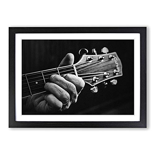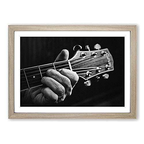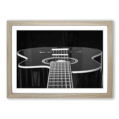 Big Box Art Framed Print of Guitar Black and White Design | Wall Art Picture | Home Decor for Kitchen, Living, Dining Room, Bedroom, Hallway, Office, Oak, A2 / 24.5x18 Inch / 62x45cm
