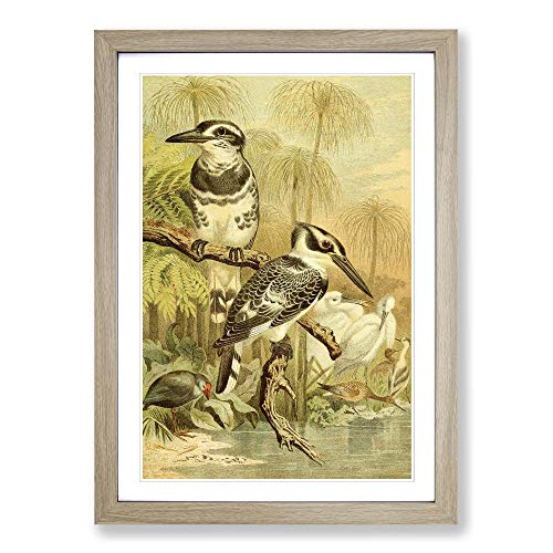 Big Box Art Vintage Brehms Tierlben Black & White Kingfisher Framed Wall Art Picture Print Ready to Hang, Oak A2 (62 x 45 cm)