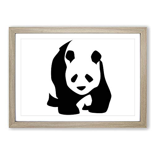 Big Box Art Framed Print of Panda Black and White Design | Wall Art Picture | Home Decor for Kitchen, Living, Dining Room, Lounge, Bedroom, Hallway, Office, Oak, A2 / 24.5x18 Inch / 62x45cm