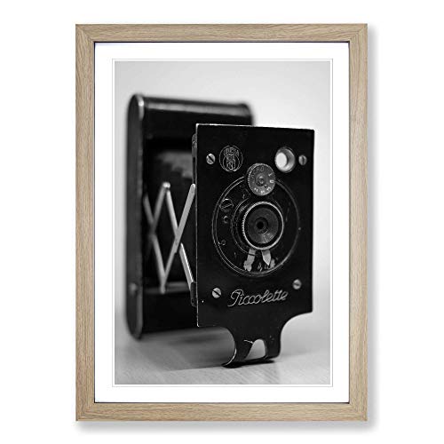 Big Box Art Vintage Camera Black and White Framed Wall Art Picture Print Ready to Hang, Oak A2 (62 x 45 cm)