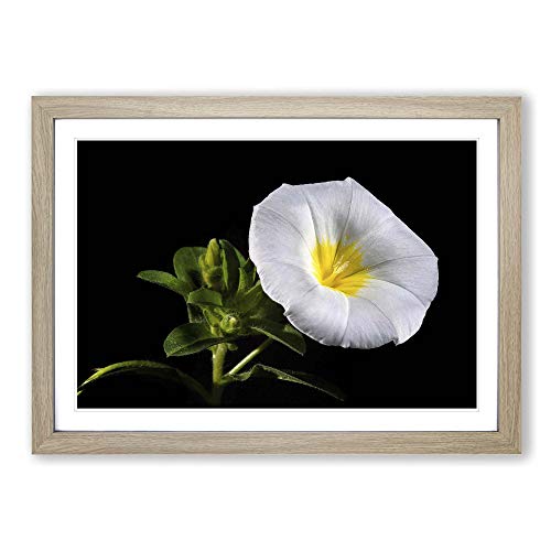Big Box Art Framed Print of Flower Morning Glory White Design | Wall Art Picture | Home Decor for Kitchen, Living, Dining Room, Bedroom, Hallway, Office, Oak, A2 / 24.5x18 Inch / 62x45cm