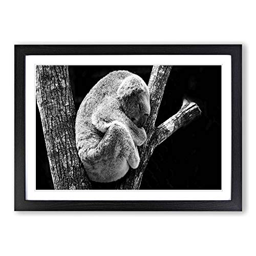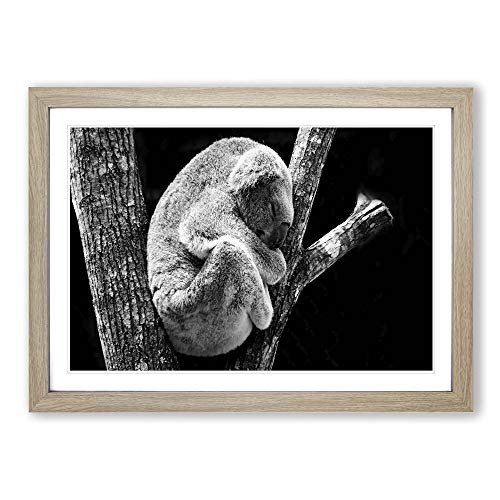Big Box Art Framed Print of Koala in a Tree Black and White Design | Wall Art Picture | Home Decor for Kitchen, Living Room, Bedroom, Hallway, Oak, A2 / 24.5x18 Inch / 62x45cm