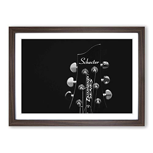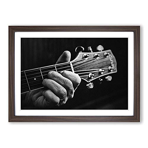 Big Box Art Framed Print of Guitar Black and White Design | Wall Art Picture | Home Decor for Kitchen, Living, Dining Room, Bedroom, Hallway, Office, Walnut, A2 / 24.5x18 Inch / 62x45cm