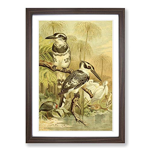 Big Box Art Vintage Brehms Tierlben Black & White Kingfisher Framed Wall Art Picture Print Ready to Hang, Walnut A2 (62 x 45 cm)