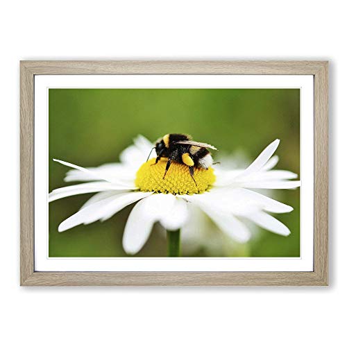 Big Box Art Bumble Bee White Daisy Framed Wall Art Picture Print Ready to Hang, Oak A2 (62 x 45 cm)