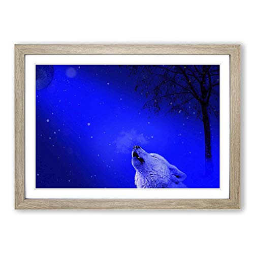 Big Box Art Howling White Wolf Framed Wall Art Picture Print Ready to Hang, Oak A2 (62 x 45 cm)