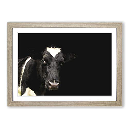 Big Box Art Black and White Cow Framed Wall Art Picture Print Ready to Hang, Oak A2 (62 x 45 cm)