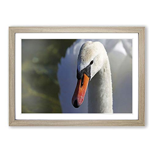 Big Box Art White Swan Framed Wall Art Picture Print Ready to Hang, Oak A2 (62 x 45 cm)