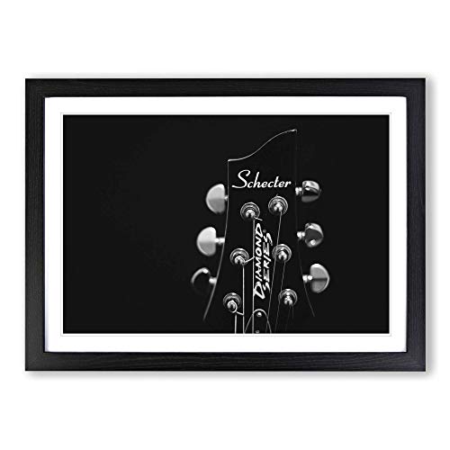 Big Box Art Guitar Black and White Framed Wall Art Picture Print Ready to Hang, Oak A2 (62 x 45 cm)