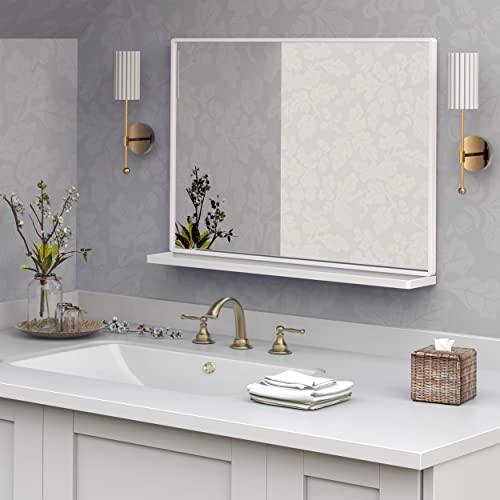 ANYHI White Bathroom Wall Mirror with Shelf, 80x62CM Bathroom Mirrors for Wall, Rectangular Hanging Mirror for Living Room Bedroom Entryway, Horizontal