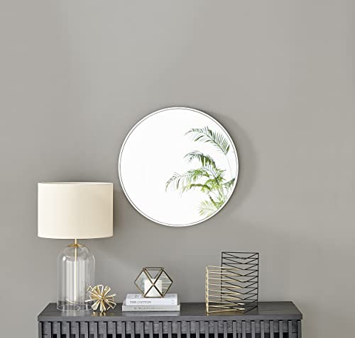 Furniturebox UK Emma 60cm Round White Metal Wall Mirror, Living Room, Hallway, Dining Room - Stylish, Modern Circle Mirror