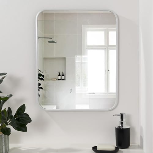 OHS Bathroom Mirror White, Large Wall Mirror Metal Framing Decorative Clear Glass Mirrors for Bathroom Living Room Bedroom Hallway Home Accessories, 54 x 42cm
