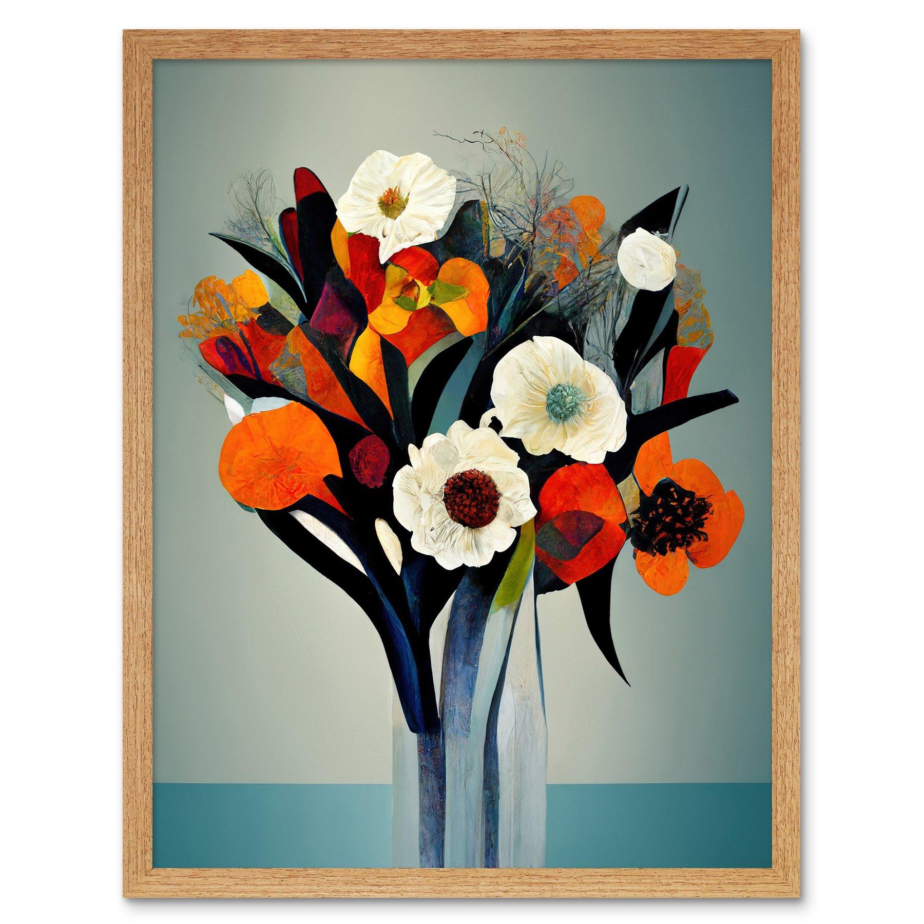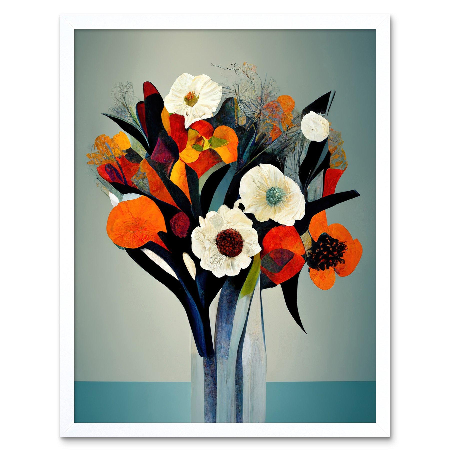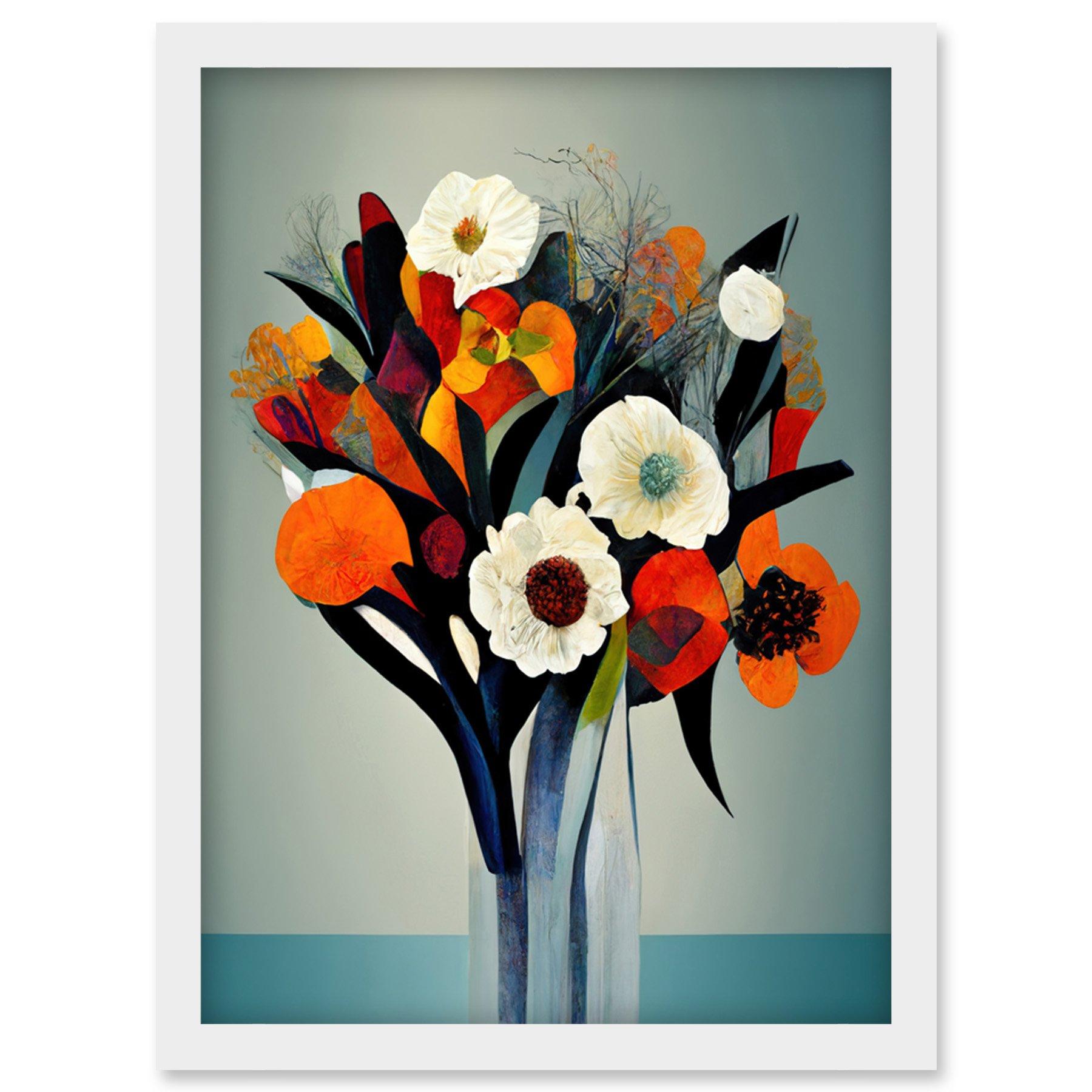 Modern Abstract Winter Flower Floral Bouquet Orange Yellow Blue White Acrylic Paint Art Print Framed Poster Wall Decor 12x16 inch