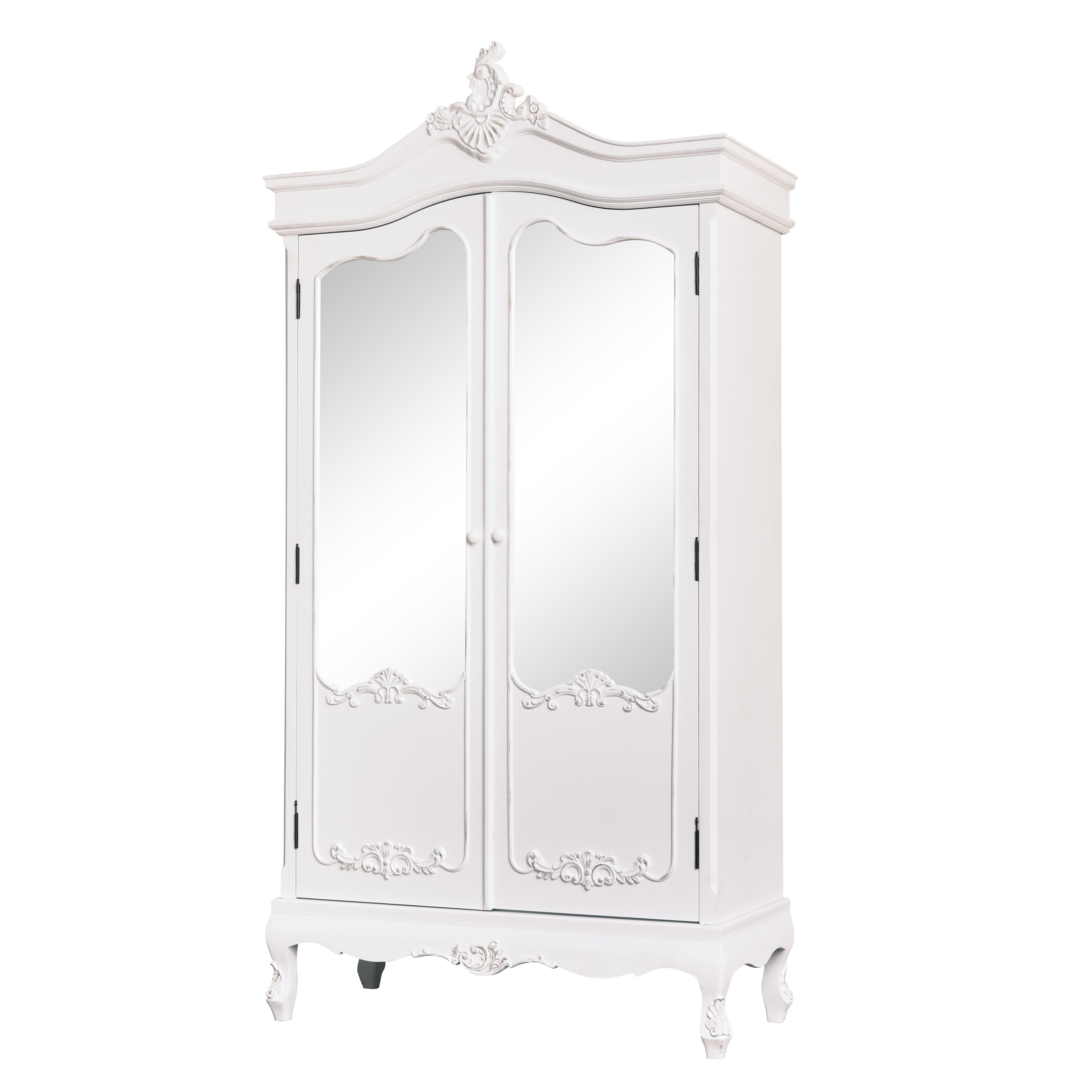 Antique White Mirrored Double Wardrobe - Pays Blanc Range