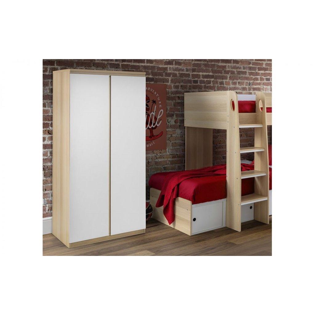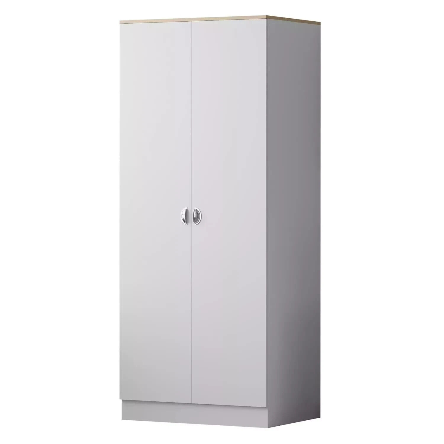 2 Door Wardrobe White with Oak top finish Metal Cup Handles Bedroom storage