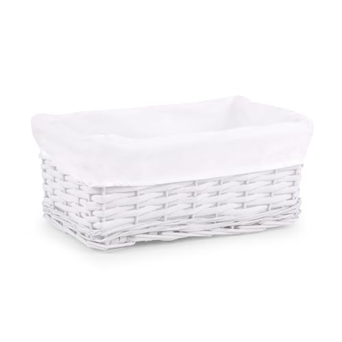 Woodluv Storage Baskets Woven Wicker, Storage Basket for shelves, Baskets to make hampers, Storage Organiser, White - Small