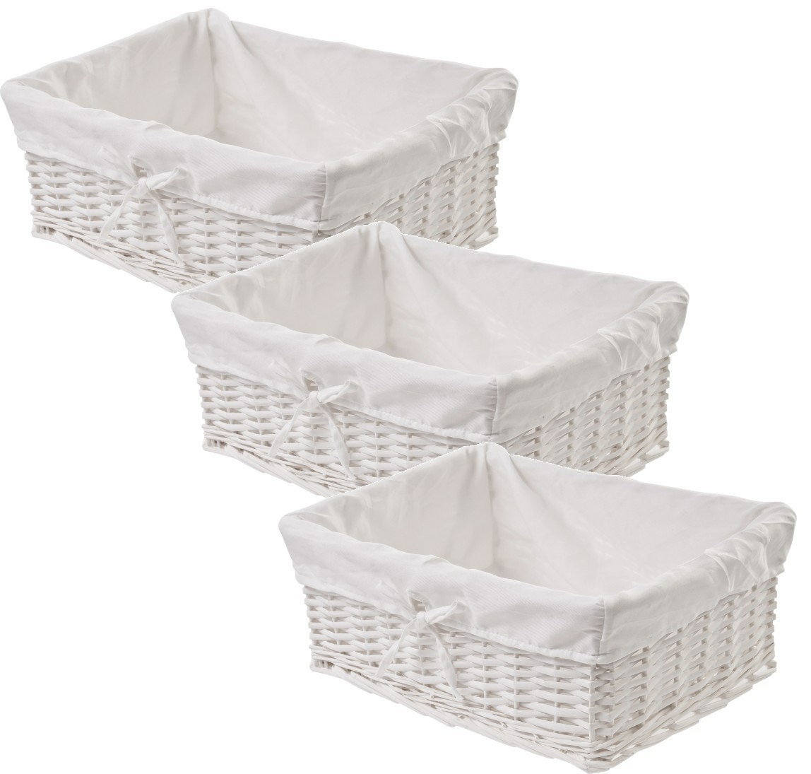 Arpan White Wicker Storage & Hamper Basket with White Cloth Lining – Small, Medium & Large Gift Baskets for Xmas, Wedding, Confetti & Parties, Snack Basket, Wicker Baskets Multipack
