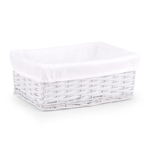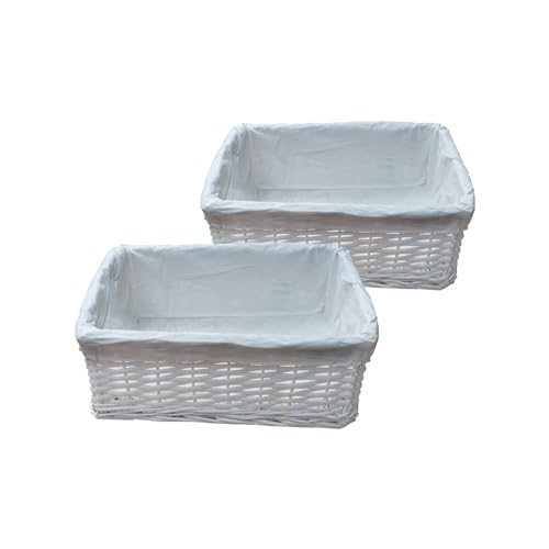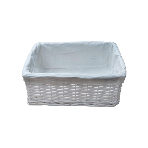 Woodluv Storage Baskets Woven Wicker, Storage Basket for shelves, Baskets to make hampers, Storage Box, Storage Organiser, White, Medium