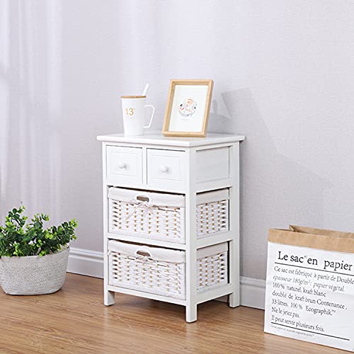 Ruication Bedside Table Bathroom Cabinet with 3 Drawers Wicker Baskets 2 Small Drawers Storage Unit Chest of Drawers Fully Assembled for Living Room Bedroom Bathroom Hallway (White)