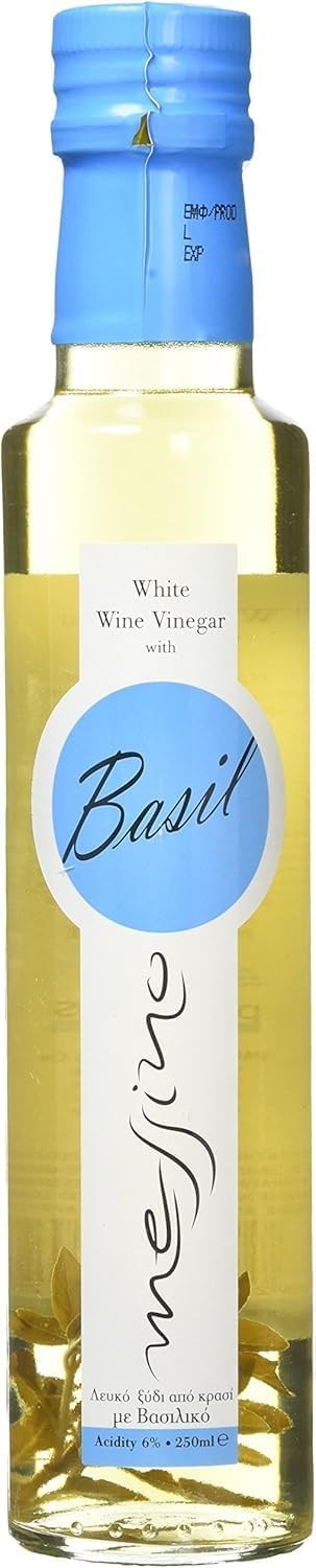 Messino Greek White Wine Vinegar with Basil – 2 x 250ml | Naturally Flavored,