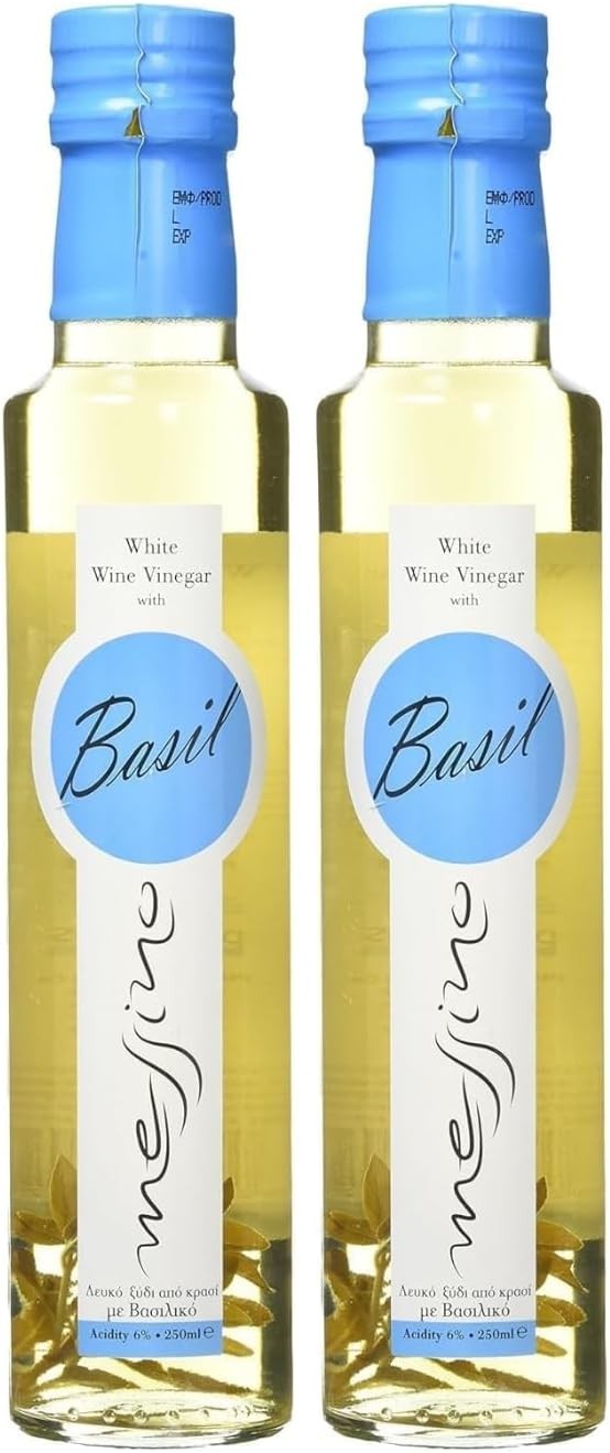 Messino Greek White Wine Vinegar with Basil – 2 x 250ml | Naturally Flavored, Aromatic, Mediterranean Vinegar from Messinia | Vegan-Friendly, No Added Sugar, Perfect for Salads, Pasta & Desserts