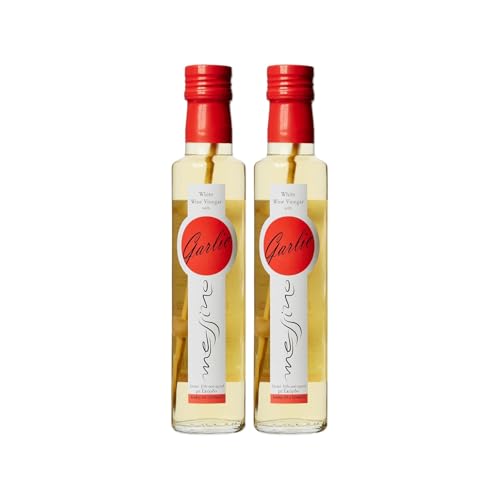 Messino Greek White Wine Vinegar with Garlic – 2 x 250ml | Artisan Greek Vinegar with Intense Aroma | Salad, Meat, Pasta & Vegetable Dressing | Vegan & No Added Sugar