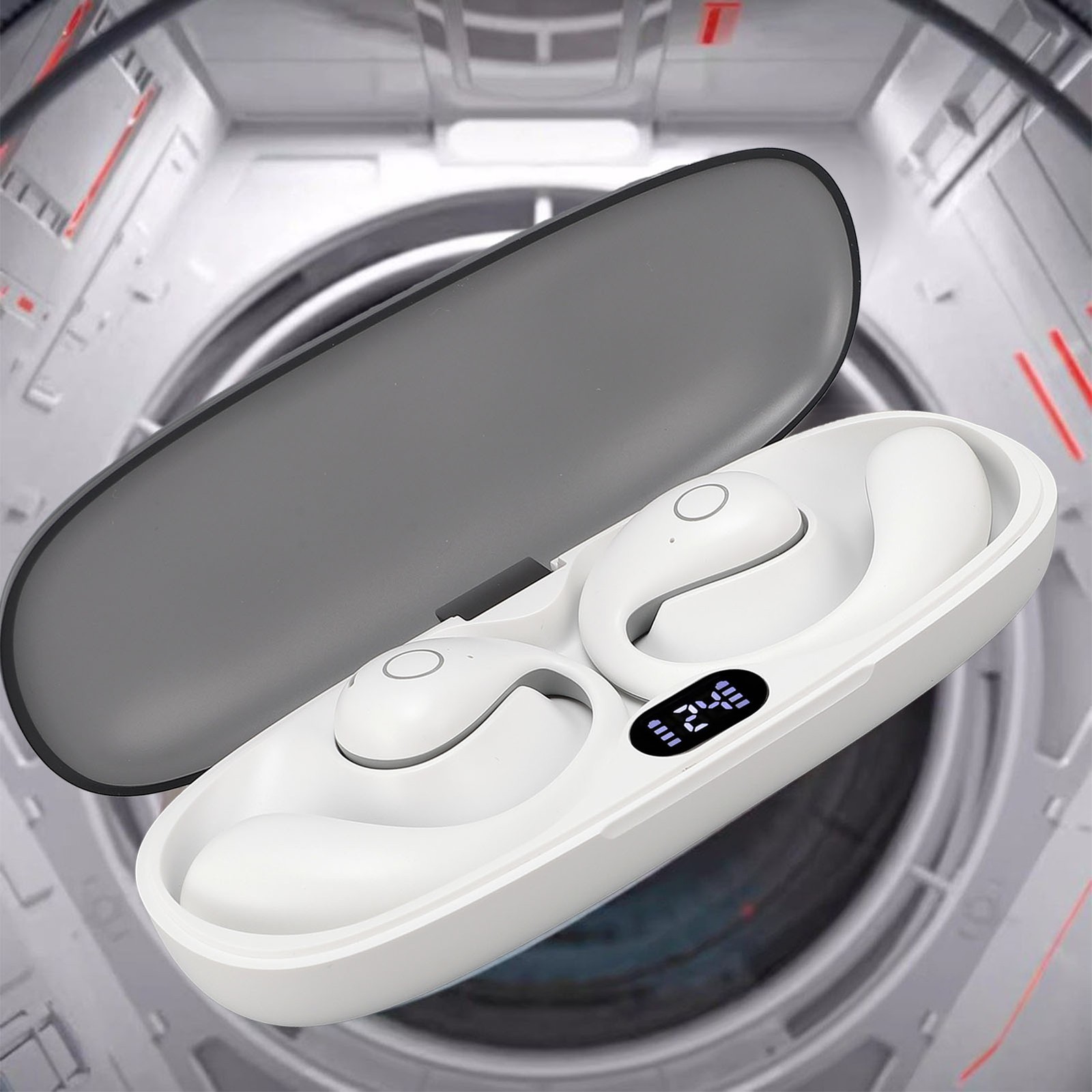 White wireless earbuds
