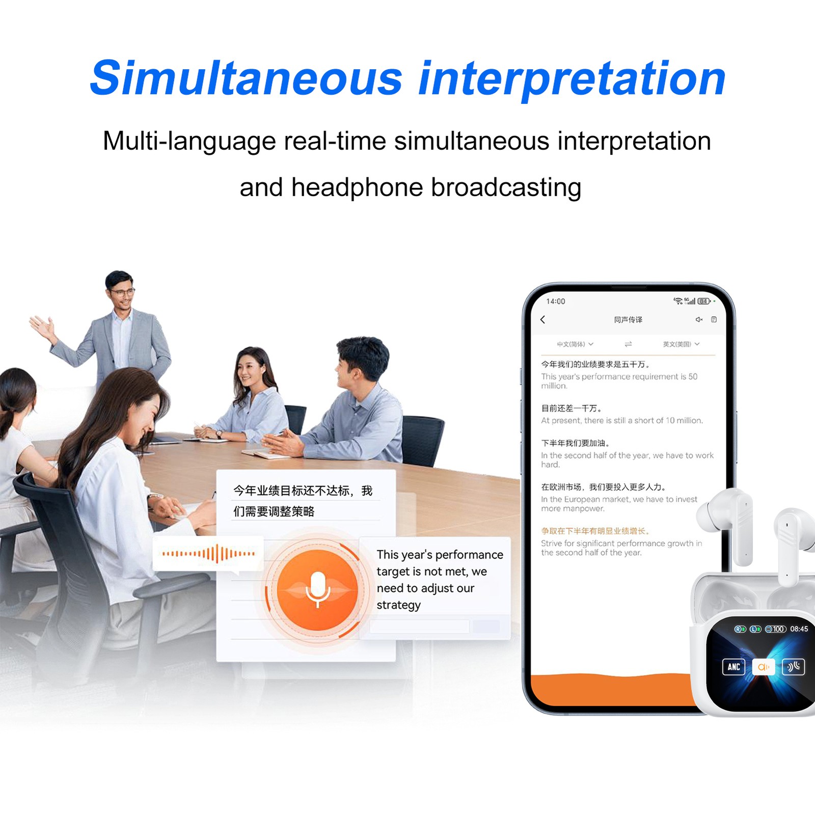 White AI Translation Wireless Earbuds With Full Color Touch Screen Charging WL