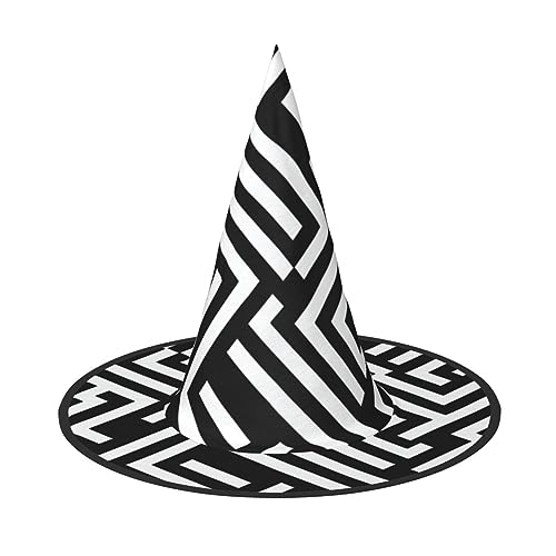 Black and White Line Maze Design Print Halloween Cone Witch Hat Cosplay for Wizards Masquerade Halloween Party Accessories.