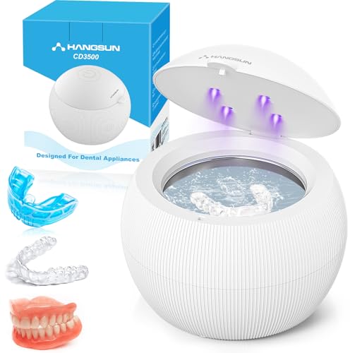 Hangsun CD3500 Ultrasonic Retainer Cleaner - Professional Ultrasonic Denture Cleaner with UV Light - Dental Cleaning Pod for Dentures, Aligners, Retainers, Whitening Trays and Mouthguards