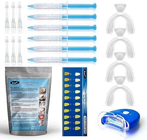 KAV PLUS 10 Gel Teeth Whitening Kit PRO Home Kit LED Lazer Light 4X Mouth Trays