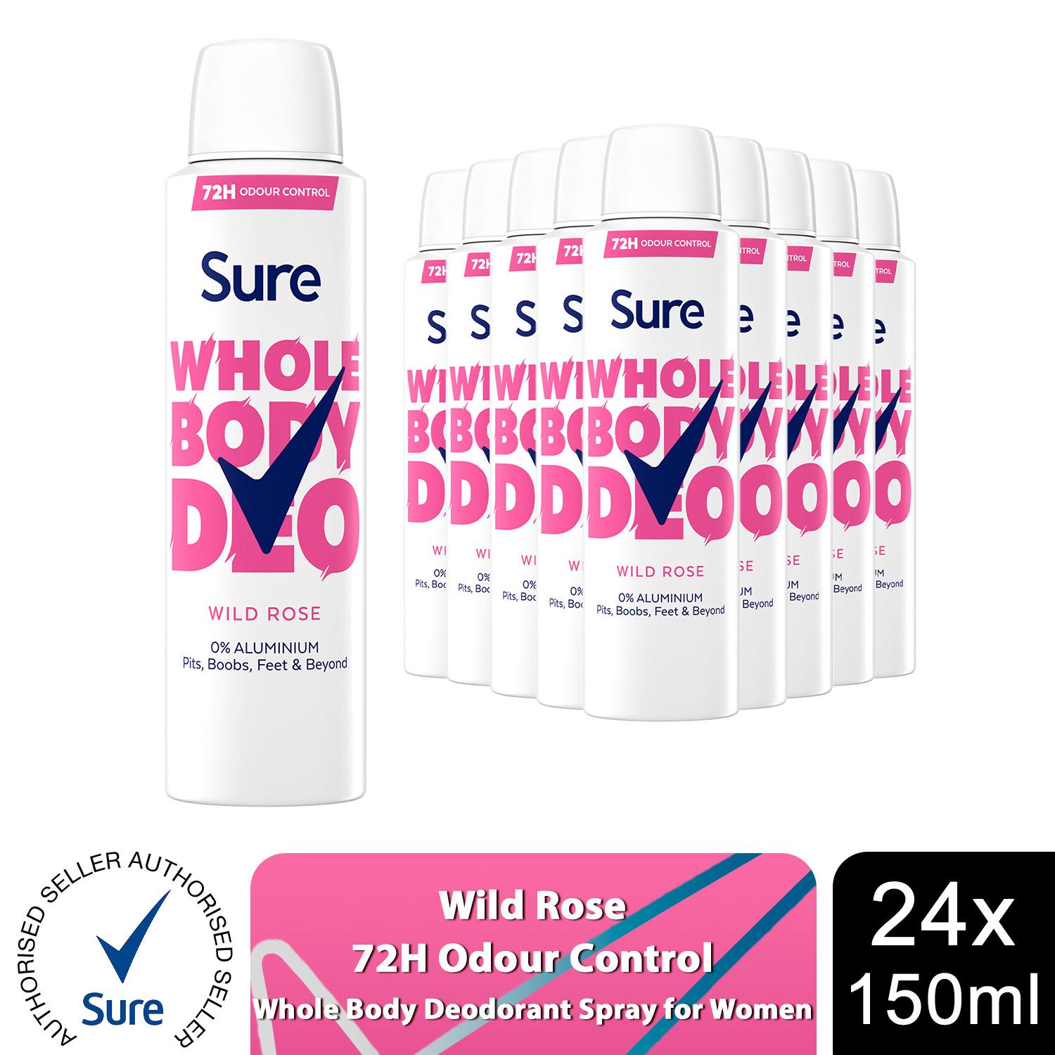 Sure Women Wild Rose Whole Body Deodorant Spray Aluminium Free 150ml, 12 Pack