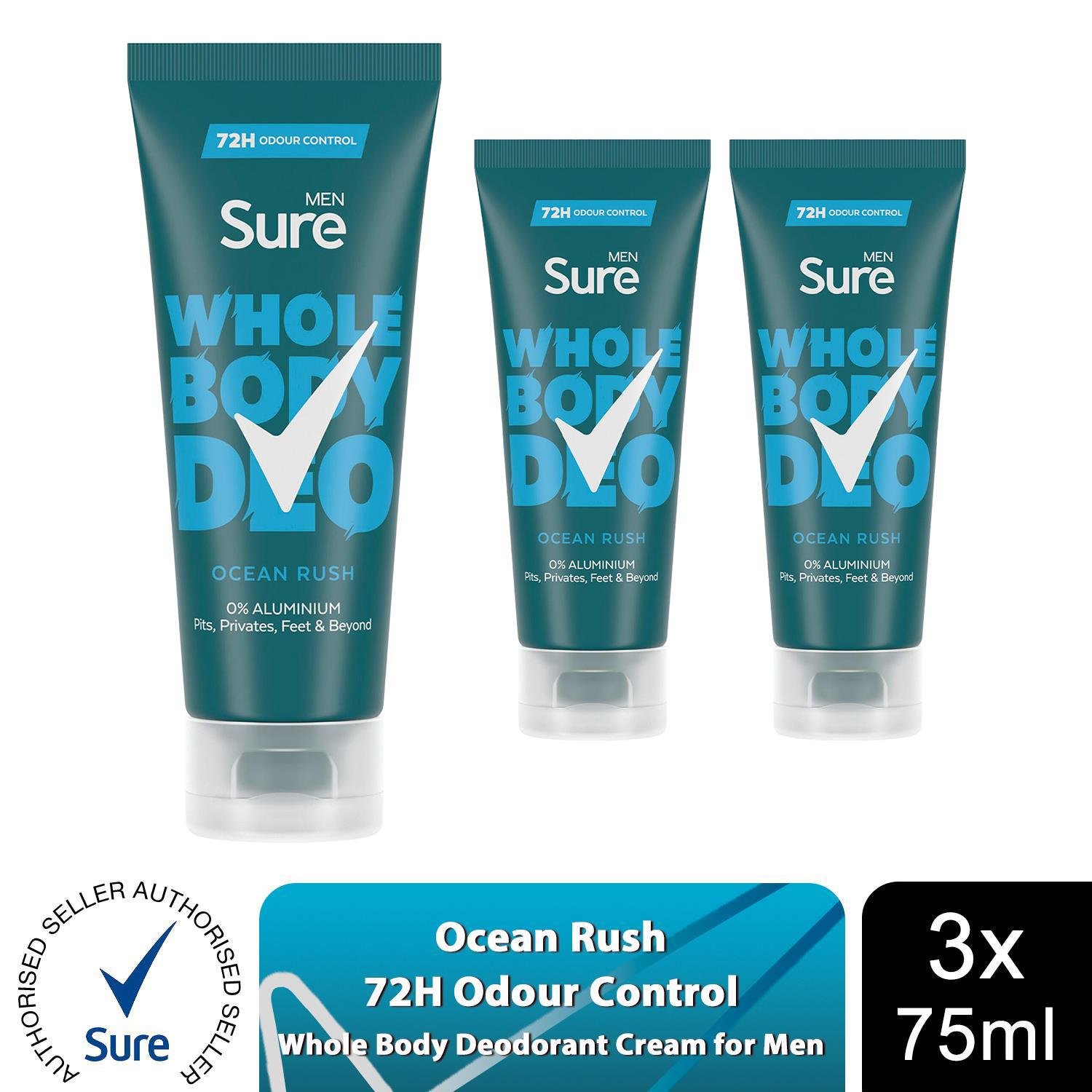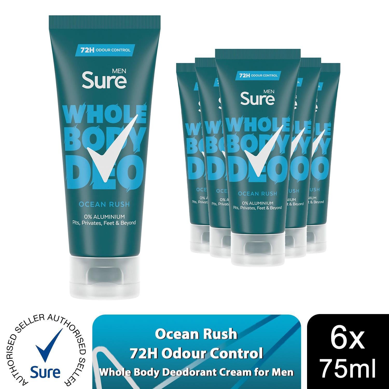 Sure Men Whole Body Deodorant Cream Ocean Rush with 72H Odour Control 75ml, 6 Pk