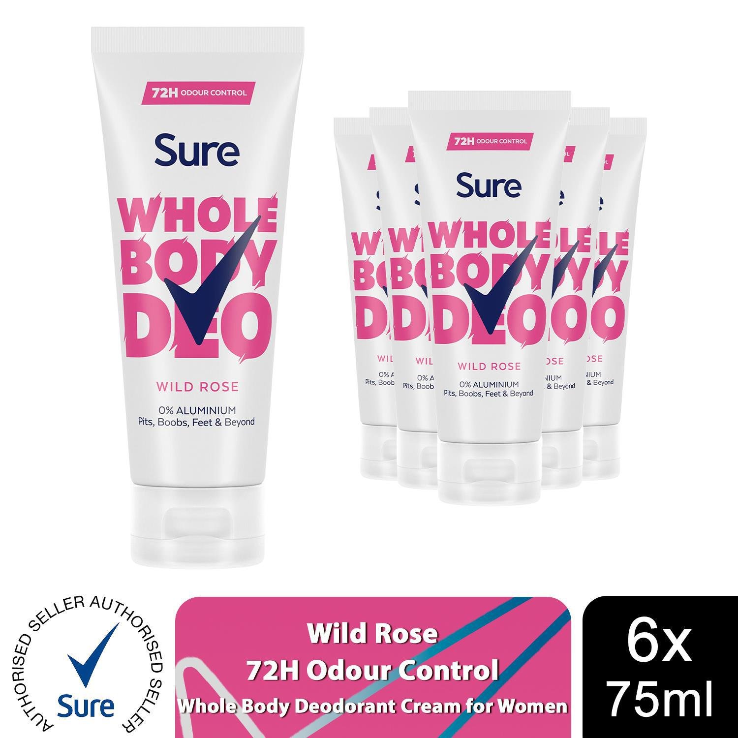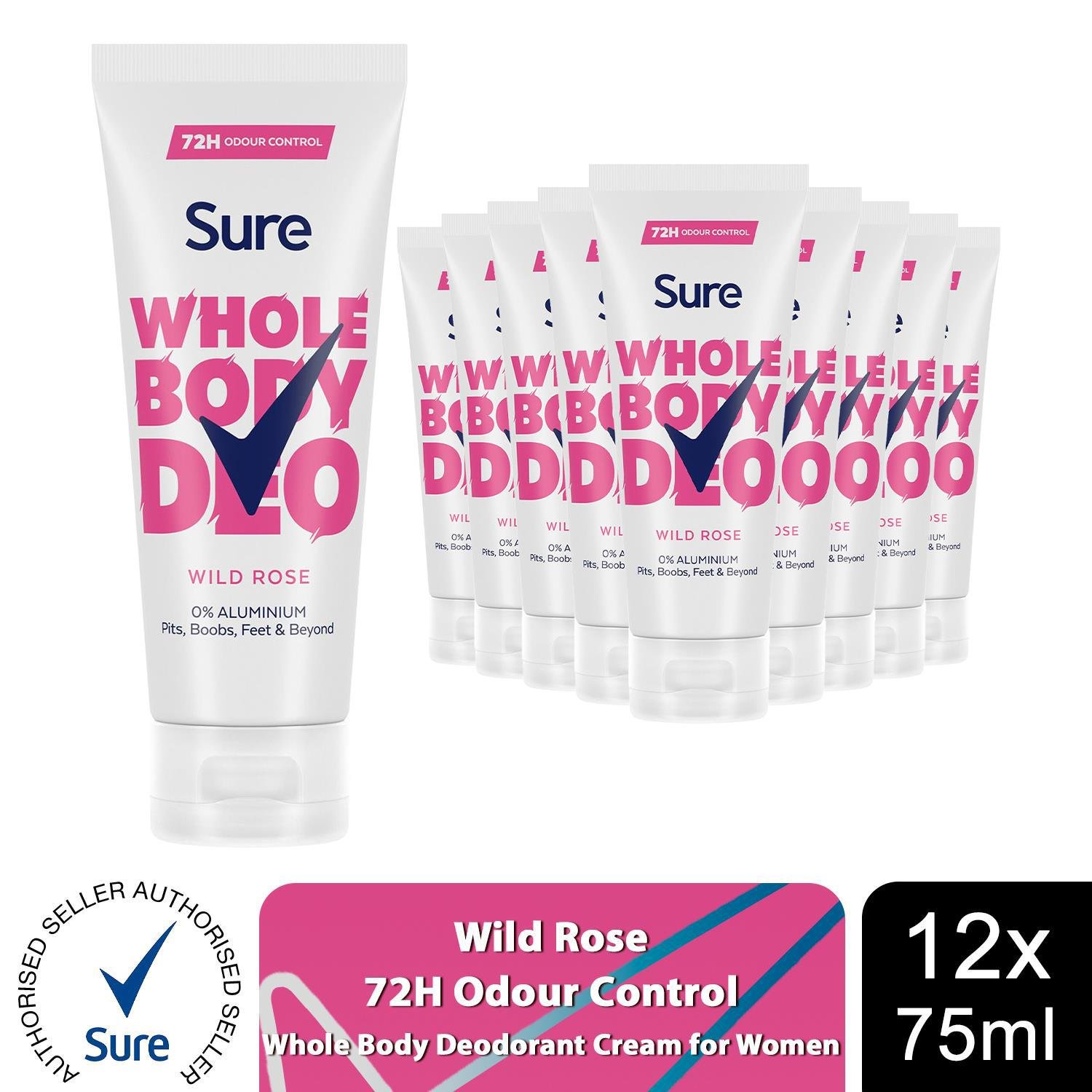 Sure Wild Rose Whole Body Deodorant Cream Aluminium Free 75ml, 12 Pack