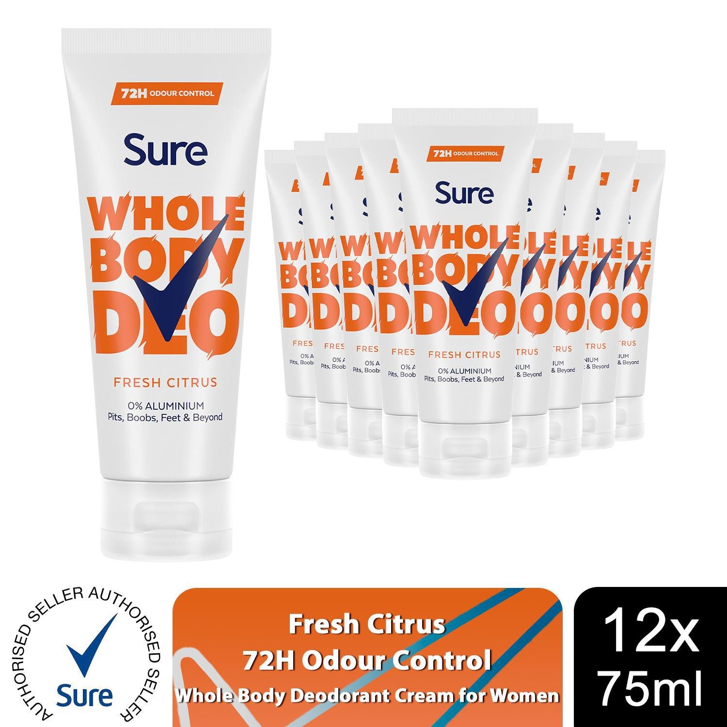 Sure Fresh Citrus Whole Body Deodorant Cream Aluminium Free 75ml, 12 Pack