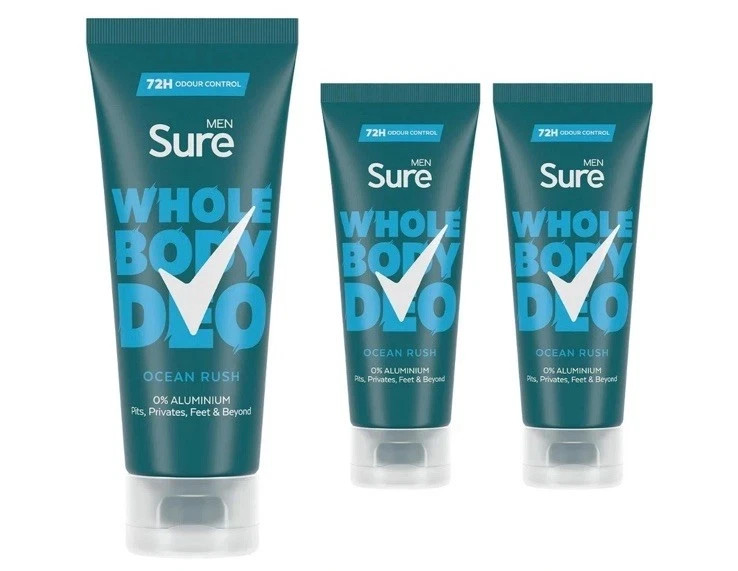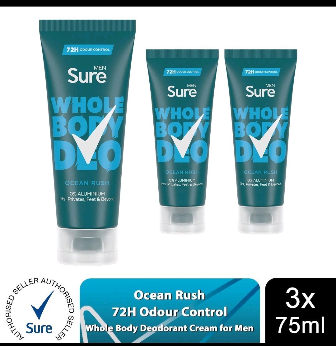 Sure Men Whole Body Deodorant Cream Ocean Rush with 72H Odour Control 75ml, 3 PK